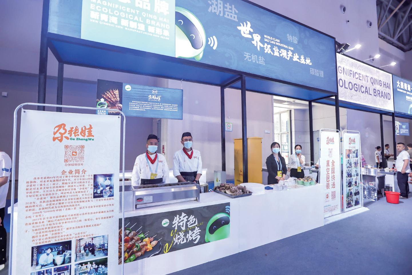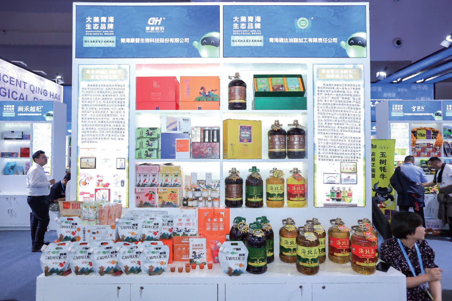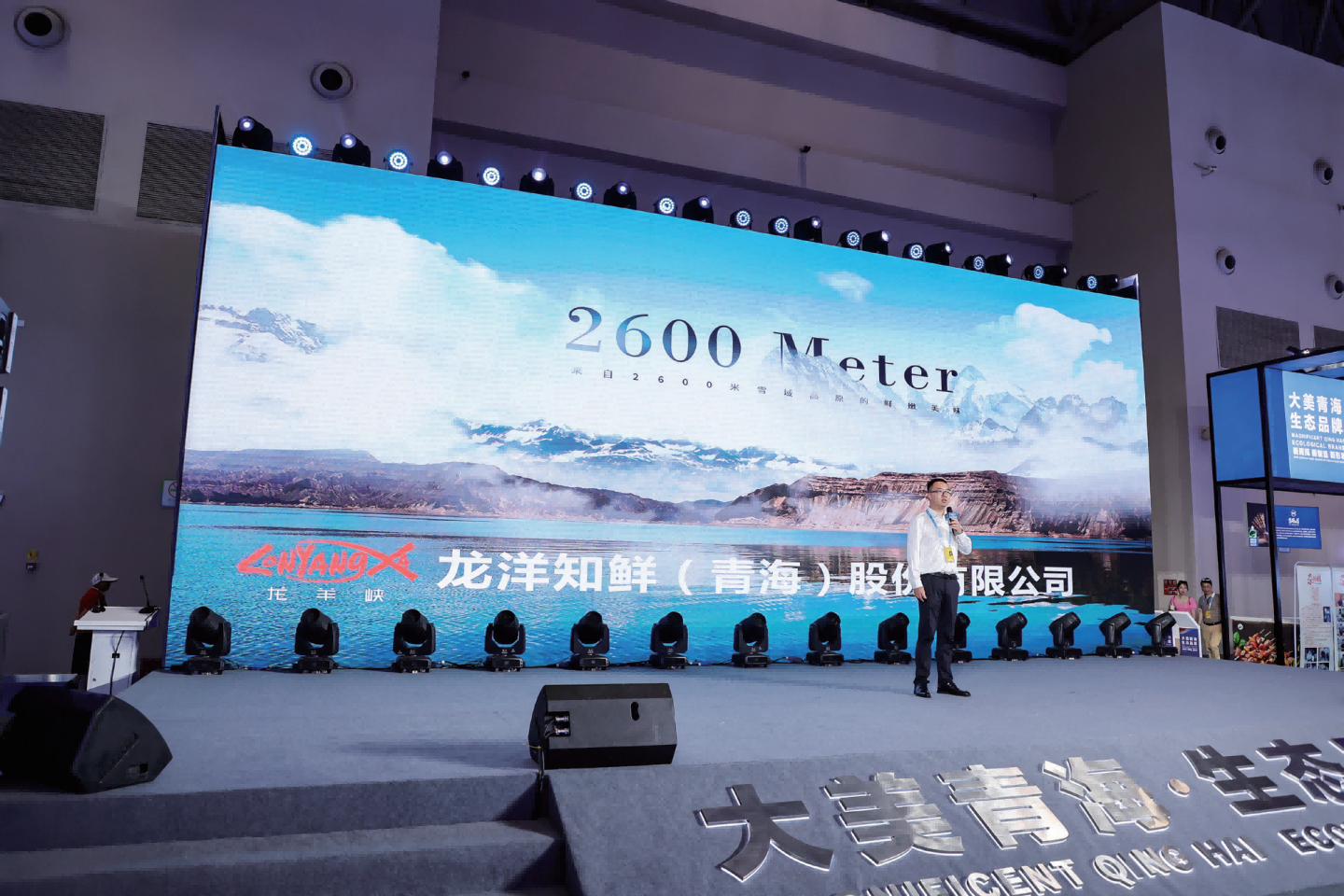 在活动举办期间,除了安排参展经营主体在展位进行持续推介外,专门组织品牌商品专场推介活动,组织 1 0 家 青 海 品 牌 企 业 以专场宣讲的形 式,介绍、 展示了企业特色产品。