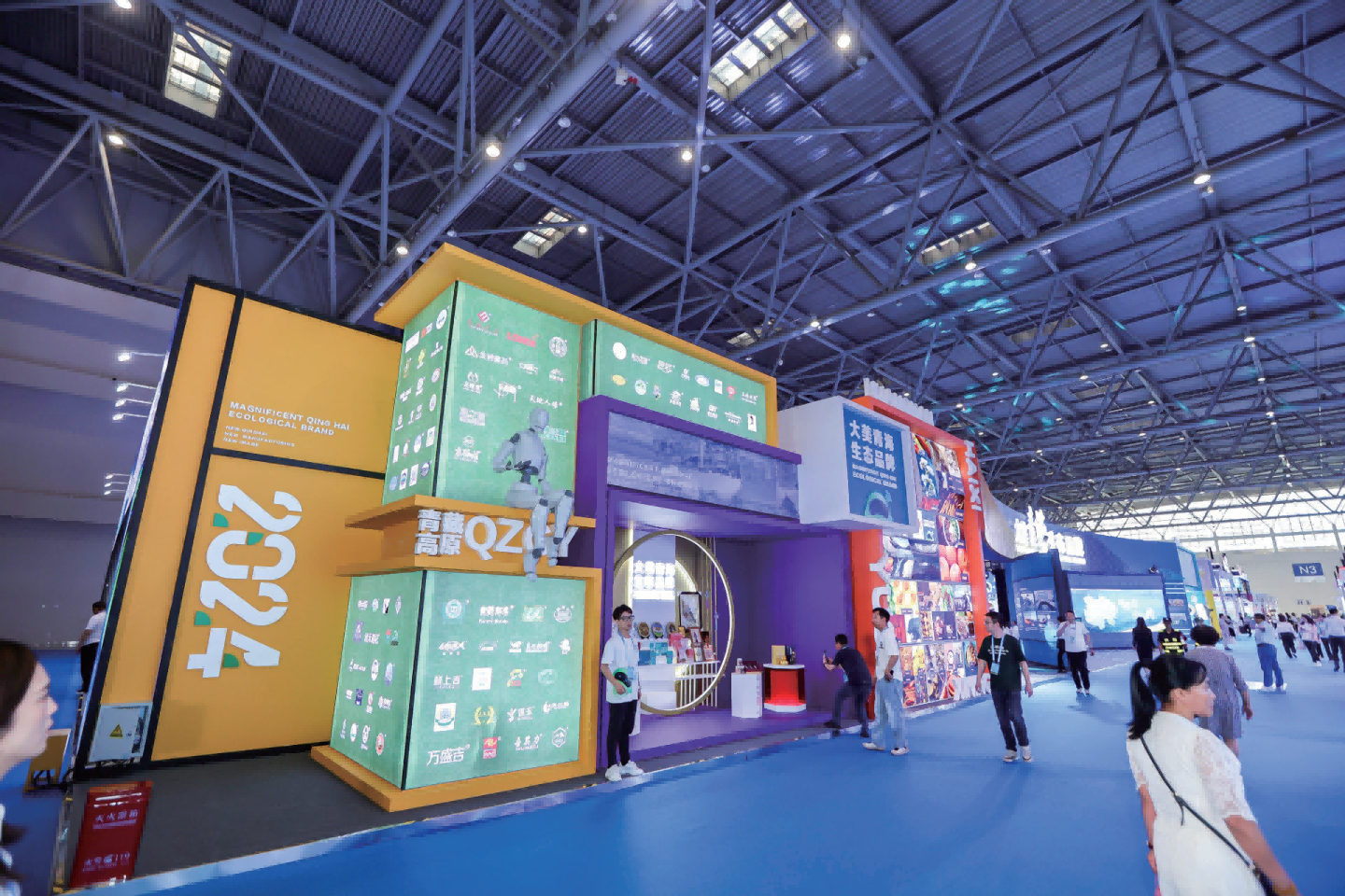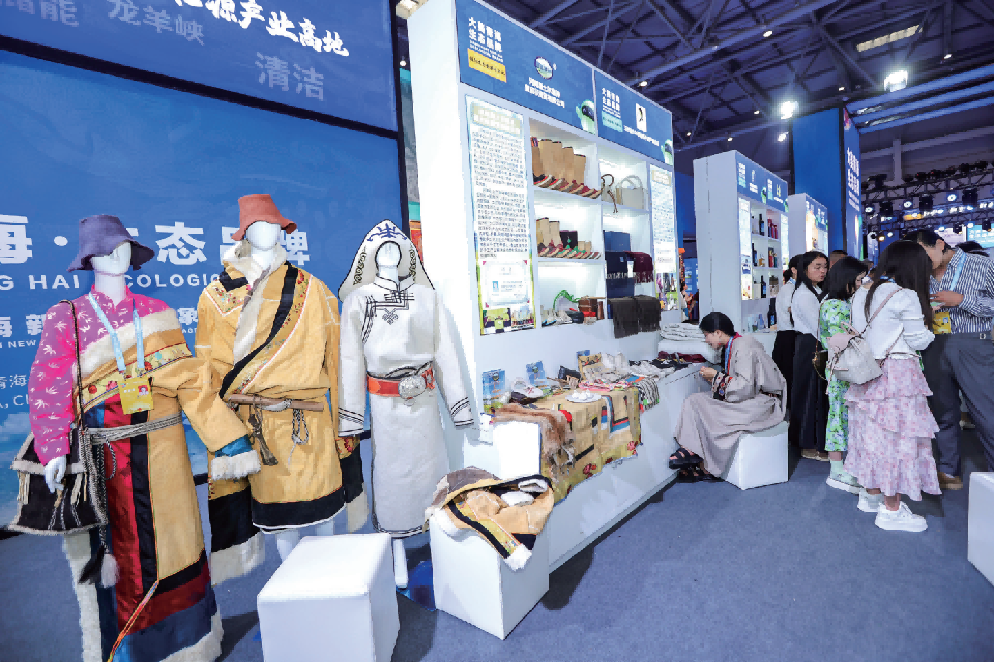 青海展区占地一千四百余平米,布置整体形象展示、生态映像展示、特色产品展示、品牌推介展 示、非遗文化体验、高原美食体验、线上直播推介等功能区域 。通参展期间,我省展商展示出积极的洽谈意愿,吸引了来自国际市场和西部市场的关注,形成合作意向签约项目43项,意向签约金额2.93亿元,正式签约金额1.33亿元。
